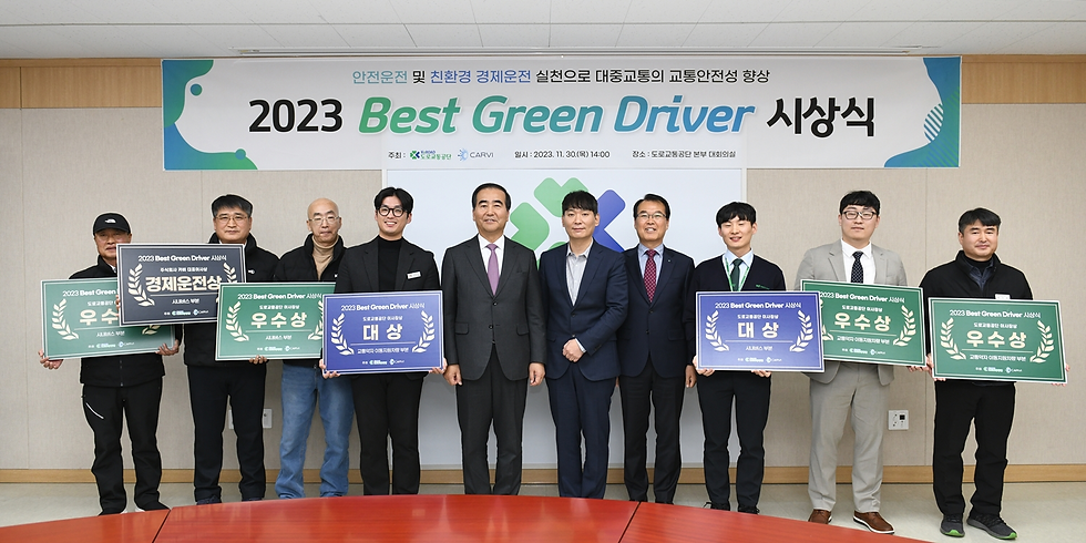 도로교통공단은 주식회사 카비와 함께 30일 공단 본부(강원도 원주시 소재)에서 대중교통 운전자의 안전운전을 통한 교통사고 예방과 친환경 경제운전 실천 문화 확산을 위한 「2023년 베스트 그린 드라이버 대회 시상식」을 개최했다.
